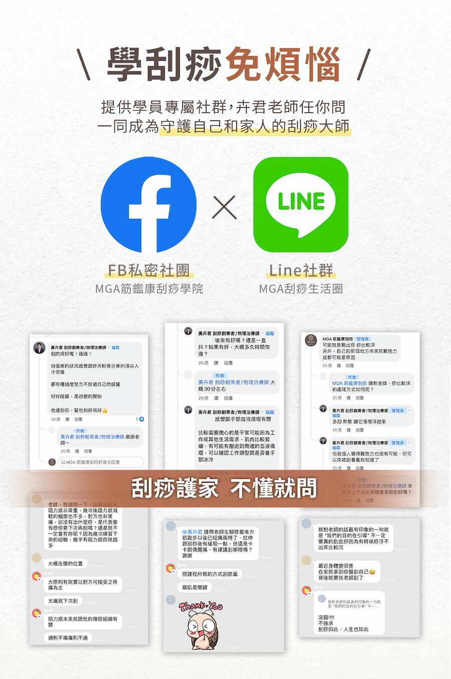 凡購買MGA刮痧商品的刮友,都可以加入『產品使用教學影片』平台中,且會不定期更新(QRcode會在產品包裝盒上)