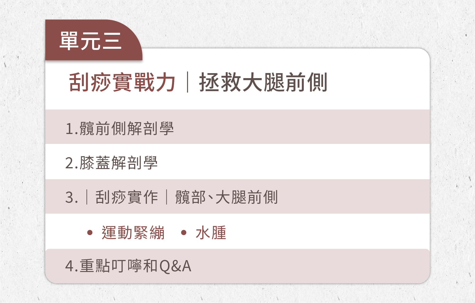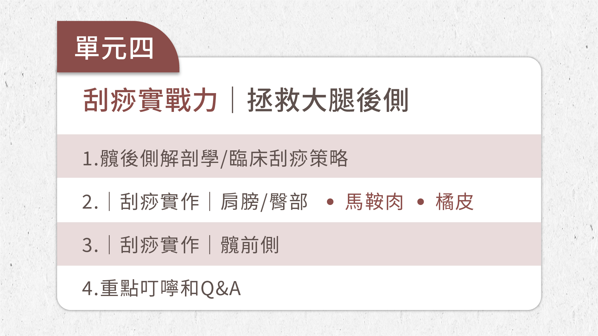 本課程所附之刮痧盤為個人化商品,一旦寄出恕不退還與退換。